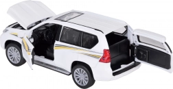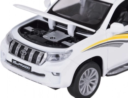 Ovaj realističan model TOYOTA LAND CRUISER PRADO ističe se preciznom obradom eksterijera i interijera te izdržljivom metalnom konstrukcijom. Zahvaljujući mjerilu 1:26–1:36 djeluje vjerno i izvrstan je i za igru i za izlaganje u kolekciji. Bijela karoserija sa sportskim detaljima naglašava robustan karakter SUV-a.