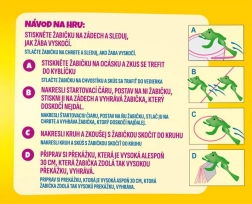 Skačuće žabice QUIZY jednostavna su i zarazna igra za djecu i odrasle. Pomoću prsta ili priložene pločice odbijate plastične žabice tako da doskoče u određeni prostor. Pravila ćete savladati u trenu, ali ovladati preciznim skokovima traži malo vježbe – idealno za prijateljsko nadmetanje i obiteljsko poslijepodne.