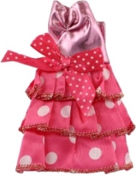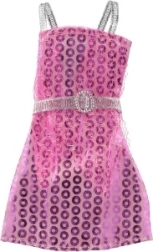 Ružičaste haljine s blistavim srebrnim pojasom i trakama daju lutki dojam luksuza i stil.