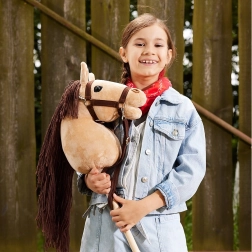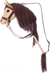 Konjić ima realističan dizajn s mekom plišanom glavom i drvenom palicom, što djeci omogućuje simulirati jahanje konja.