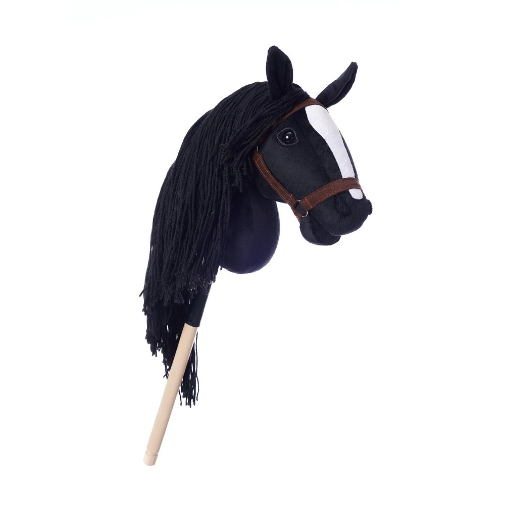 Ovaj štapni konjić opremljen je upečatljivom crnom grivom i bijelom prugom, što mu daje realističan izgled. Idealan je za maštovita jahanja i treninge.