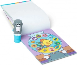 Uživajte u beskrajnim mogućnostima s našim setom: žig u obliku sive mačke s bijelim njuškom i ružičastim nosićem, umetnuti modul s 300 naljepnica s temom životinja te 24-straničnu šarenu knjigu namijenjenu stvaranju vlastite životinjske priče.