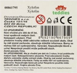 Šareni dječji ksilofon duljine 24 cm kombinira plastično tijelo i metalne tipke za ugodan, čist ton. U kompletu je palica, a pakiranje je u kutiji 29 × 16 × 3 cm. Idealan za prve glazbene pokuse i razvoj ritma, sluha i prepoznavanja boja. Pogodno za djecu od 3 godine.