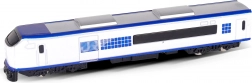 Bijela izvedba s plavim detaljima i čistim linijama naglašava moderan izgled lokomotive – idealno za igru i izložbu.