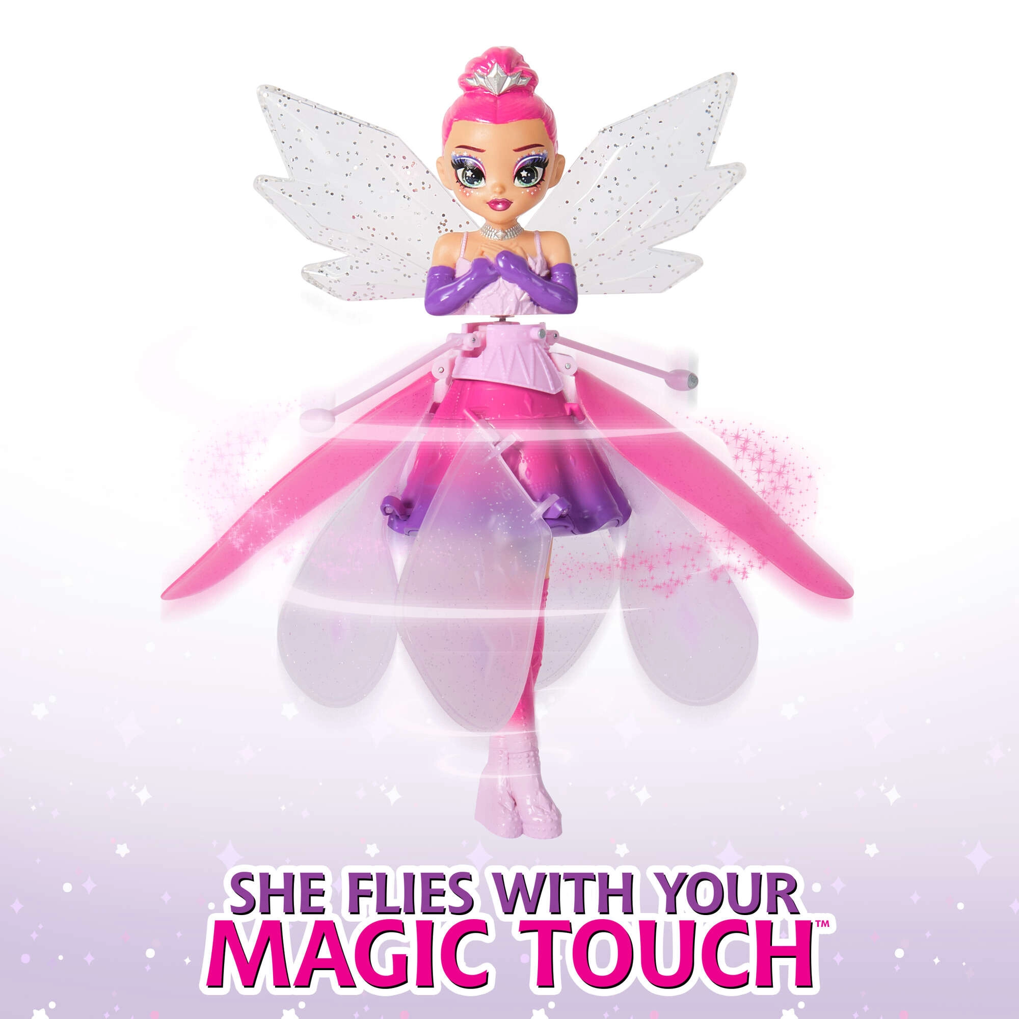 Otkrijte čaroliju interaktivne igračke HATCHIMALS Crystal Flyers, koja zahvaljujući senzorima doista leti i lebdi iznad vaših dlanova. Lutka ima svjetlucava krila, rotirajuću “haljinicu” i detaljnu izradu s duginom kosom i metalik naglascima. Punjenje je jednostavno preko USB-a, a sigurnost osigurava automatsko zaustavljanje rotora pri dodiru.