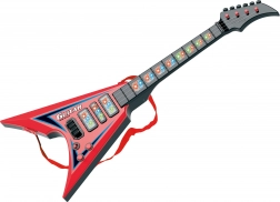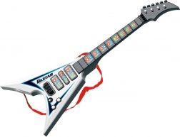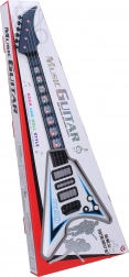 Ova električna gitara je idealna za početnike i napredne glazbenike zahvaljujući svojim dimenzijama 22x5x56 cm. Ima svjetlosne i zvučne efekte koji stvaraju jedinstveno iskustvo prilikom sviranja. Pogonjeno s tri 3xAA baterijama koje nisu uključene u pakiranje, te jednostavno rukovanje zahvaljujući ON/OFF prekidaču i potenciometrima. Oba potenciometra služe za upravljanje efektima.