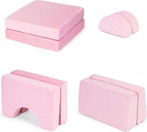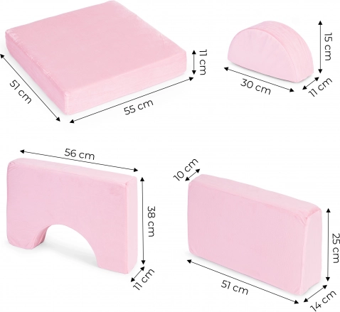 Otkrijte pametno i zabavno rješenje za dječju sobu. Set od 8 pjenastih jastuka različitih oblika potiče kreativno slaganje i razvoj mašte i motorike. Od modula ćete lako složiti fotelju, mini sofu, ležaljku ili igraće prepreke – točno prema raspoloženju i potrebama djeteta.