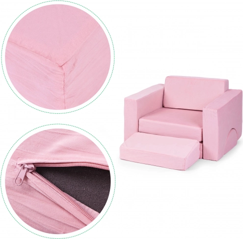Modularna dječja fotelja ECOTOYS s 8 mekih dijelova nudi udobno mjesto za sjedenje, odmor i igru. Laki pjenasti elementi mogu se slobodno slagati u fotelju, sofu, puf ili madrac. Navlake su skidive s patentnim zatvaračem za jednostavno održavanje, a ugodna tkanina i kvalitetna pjena osiguravaju komfort i sigurnost. Nosivost 120 kg.