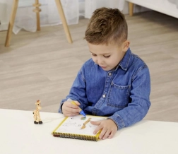 Praktični format bloka 17 × 19 cm savršen je za ruksak, izlete i čekaonice. U pakiranju je i slatka figurica žirafe koja potiče maštu i tematsku igru, kao i kist za dodatne tehnike s vodom.