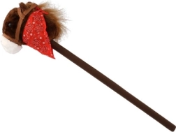 Sa smeđom plišanom glavom i upečatljivom crvenom maramom, doprinosi igri kaubojskom atmosferom, dok čvrsta drvena šipka osigurava stabilnost i sigurnost. Idealno za unutarnju i vanjsku upotrebu.