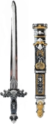 Postani neustrašivi vitez s ovom sjajnom viteškom garniturom! Izazovi svakog nepoznatog napadača i brani svoj teritorij ili se bori za ruku princeze. Sadrži plastični mač, futrolu i štitnike za ruke.