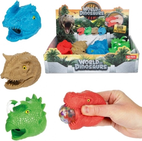 Glava dinosaura, stiskajuća antistres igračka 8 cm, 4 vrste, 12 kom u kutiji