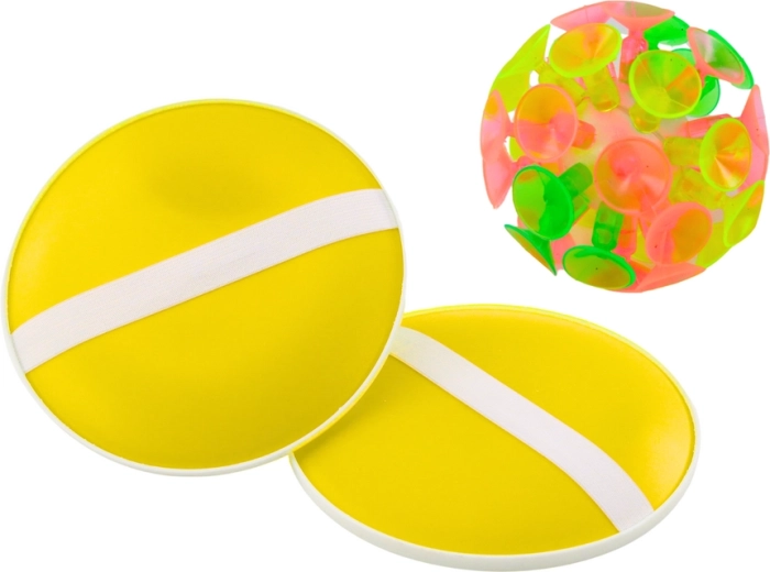Otkrijte novu razinu zabave s ovim setom za igru, koji je dizajniran da pruži radost i aktivni odmor tijekom vrućeg vremena. Set sadrži jednu lopticu s usisom i dvije žute okrugle palice, koje imaju specijalnu površinu za lako hvatanje.
