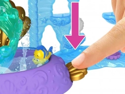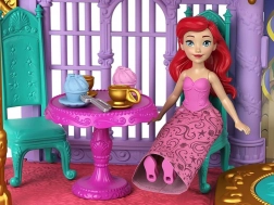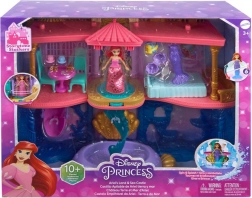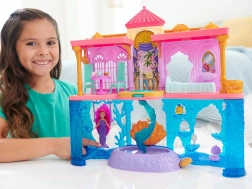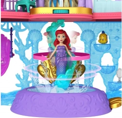 Otkrijte čarobni svijet Disney princeze Ariel s dvoetažnom palačom koja spaja kopneno i podmorsko kraljevstvo. Djeca će uživati u 6 zona za igru, rotirajućem plesnom podiju, blagovaonici, spavaćoj sobi i podmorskom bazenčiću s gumbom za mjehuriće. U setu je lutka Ariel sa promjenom izgleda – ružičasta haljina i rep koji mijenja boju toplom vodom – za beskrajne priče i kreativnu igru.