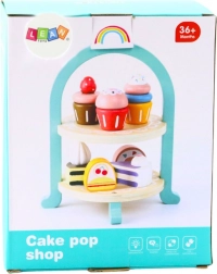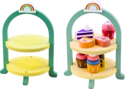 Drveni set za kolače elegantna je i očaravajuća igračka koja djecu uvodi u svijet slastica i kuhinjskih igara. Set uključuje stilizirani stalak za slatkiše koji ima dekorativnu i praktičnu funkciju te daje čar svakom dječjem prostoru ili kuhinjskoj igrački. Na stalku su izložene razne drvene slastice, poput preslatkih tortica, muffina i kolača, koje oduševljavaju preciznom izradom i smislom za detalj.