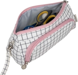 Za još bolju organizaciju pernica ima pregradu s mrežicom koja odvaja glavni prostor i prednji preklop. Prednji preklop ima vlastiti patentni zatvarač, što omogućuje brz pristup njegovu sadržaju bez otvaranja glavnog dijela. Prisutnost pet gumiranih držača osigurava lak pristup često korištenim alatima.