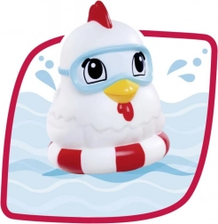 Mekane vinilne figurice ugodne su za držanje i idealne za vodu. Pilić pluta u plivaćem kolutu i mami na daljnju igru u kadi.