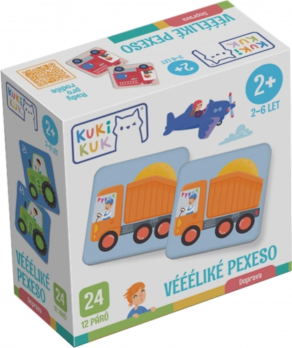 Veliko memory Prijevoz pametno je osmišljena igra koja djecu upoznaje sa svijetom vozila – od traktora i lokomotive do sanitetskog vozila i helikoptera. Zahvaljujući velikim i šarenim kartama od izdržljivog kartona, njima se lako rukuje i podnose često igranje.