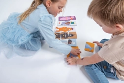 18 obostranih kartica s prikazom 12 životinjica nudi mnogo varijanti slaganja koje će zabaviti djecu na dugo vrijeme.
