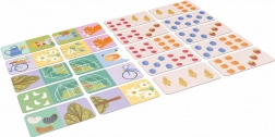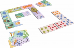 Igra nudi dvije varijante u jednoj: slikovni domino s motivima iz vrta (životinje, vrtlari i alat) te klasični domino, gdje točkice zamjenjuju razne vrste voća. Zahvaljujući velikim, izdržljivim pločicama 12 × 6 cm, igra je prikladna i za mlađu djecu te potiče učenje kroz igru.