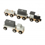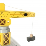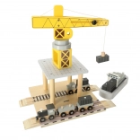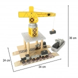 Drvena lučka dizalica idealan je set za igru za male ljubitelje transporta i građevinarstva. Sadrži žutu dizalicu, teretni brod i vozila za pretovar kontejnera. Igračka potiče kreativno razmišljanje i razvoj manualnih vještina.