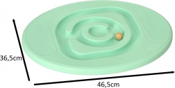 Ova ravnotežna ploča od plastike u mentol boji konstruirana je kako bi podržala fizički razvoj djece, a istovremeno bila sigurna i zabavna. Maksimalno opterećenje do 90 kg osigurava dugotrajnu izdržljivost i pri intenzivnom korištenju. Labirint smješten u središtu ploče dodaje privlačnost i angažira djecu u igri, pri čemu moraju drvene kuglice usmjeravati prema središtu labirinta uravnoteživanjem ploče. Teksturirana površina osigurava stimulaciju dodira i sigurnost.