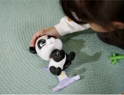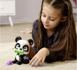 Panda pije vodu iz priložene bočice te zatim piški u pelenu koja mijenja boju u žutu kada je mokra, za autentično iskustvo igre.