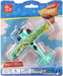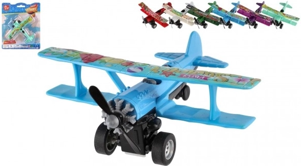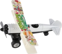 Šareni dvokrilac razveselit će svakog malog pilota. Zahvaljujući navijanju unatrag po puštanju juri naprijed, a tijekom vožnje se okreće prednja elisa. Izdržljiva izvedba od metala i plastike, kompaktne dimenzije 10 × 11 cm i mješavina atraktivnih boja čine ga izvrsnom igračkom za djecu od 3 godine naviše.
