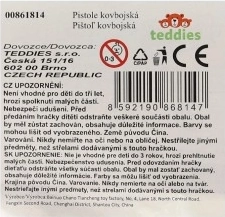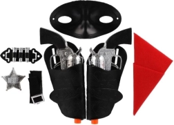 - 2 plastična pištolja, 2 futrole, šerifska značka, pojas; ovisno o varijanti može sadržavati masku i maramu