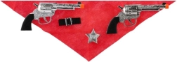 Dva pištolja s futrolama, šerifska značka, maska, crvena marama i pojas s kopčom – sve za savršeni kaubojski kostim i realističnu igru.