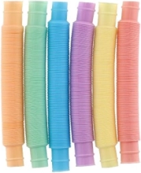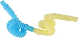 Ovaj šareni set od 6 plastičnih cjevčica nudi beskrajne mogućnosti igre – od jednostavnog rastezanja i stiskanja do izrade originalnih kreacija. Zahvaljujući elastičnoj harmonika konstrukciji, cijevi pri pokretu proizvode zabavne zvukove koji potiču osjetilne podražaje i koncentraciju.
