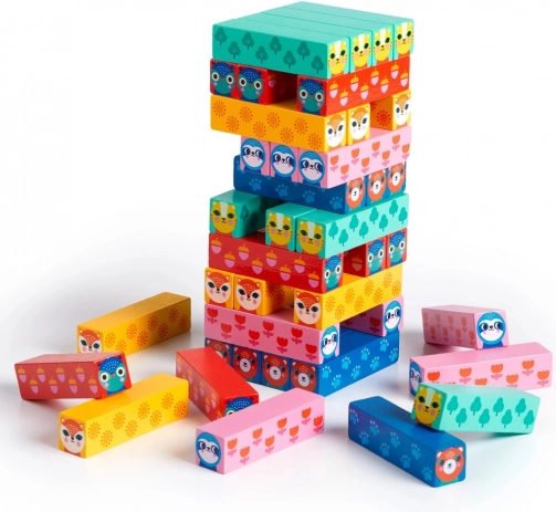 Zabavna drvena kula s motivima životinja i prirode donosi napetost i smijeh za cijelu obitelj. Igrači postupno izvlače dijelove i slažu ih na vrh kule – čije se ruke tresu najmanje? Sadrži 40 drvenih blokova, potiče finu motoriku, strpljenje i koncentraciju. Pogodno od 3 godine.