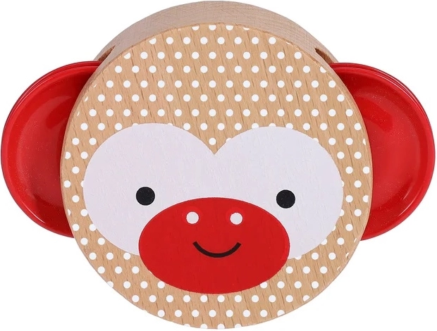 Pokrenite dječju maštu s preslatkom tamburinom! Ova mini tamburina od FSC drva s ilustracijom majmunčića ima 2 činela, tiskana je netoksičnim biljnim tintama i idealna je za prvo otkrivanje ritma i zvukova. Sjajan izbor za male glazbenike od 18 mjeseci.
