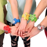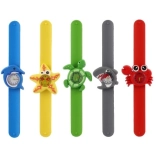 Zabavni dječji satovi s motivima morskih životinja omogućuju lako učenje vremena i udobno nošenje. Zahvaljujući samonavijajućem (slap) silikonskom remenu sat se jednostavno stavlja jednim „zamahom“. Raznobojne kazaljke pomažu djeci lakše čitati vrijeme, a ugrađena baterija LR626 osigurava trenutačnu upotrebu. Dostupno je 5 veselih motiva – dupin, zvjezdača, kornjača, morski pas i rak.