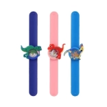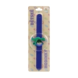 Dječji sat s dinosaurovsim motivom spaja zabavu i funkcionalnost. Samonavijajući (slap) remen nakon nježnog “pucketanja” sam se omota oko zapešća, pa dijete sat može staviti bez pomoći odraslih. Različito obojene kazaljke olakšavaju učenje vremena i potiču finu motoriku i samostalnost.