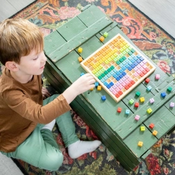 Ova drvena ploča s tablicom množenja izvrsno je pomagalo za razvoj logičkog razmišljanja i fine motorike. Šarene kockice sa zadacima motiviraju djecu na otkrivanje i učenje kroz igru, a trenutna provjera rezultata potiče samostalnost i samopouzdanje.