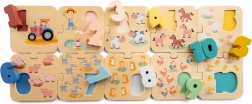 Ova slagalica pomaže djeci naučiti osnovne brojke i brojati do 10. Dizajnirana je kako bi poticala razvoj fine motorike. Sadrži:
