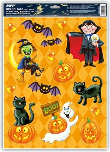 Prozorska folija za Halloween s glitterom za brzu dekoraciju bez ljepila. Elektrostatska, višekratno upotrebljiva, za staklo i druge glatke površine.