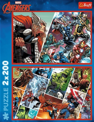 Otkrijte svijet superjunaka s dvjema originalnim ilustracijama koje prikazuju kultne članove tima Avengers. Svaka slagalica ima 200 dijelova i nakon slaganja stvara detaljnu ilustraciju dimenzija 410 × 275 mm. Idealno za djecu i odrasle obožavatelje MARVELA koji traže kvalitetno i zabavno slaganje.