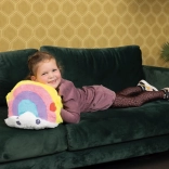 Otkrijte svestranost ovog plišanog jastuka - jastuk, rukavica za grijanje ruku i plišanac u jednom. Djeca će ga voljeti ne samo zbog njegove mekoće, već i zbog zabavnog oblika relaksacije. Zahvaljujući dvjema otvorima sa strane može služiti kao rukavica za grijanje ruku - savršen za putovanja automobilom, vlakom ili avionom. Bočni otvori također nude skrovište za male dječje dragocjenosti.