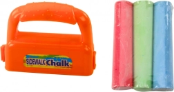 Veseli set snažnih kreta za pločnik s narančastim držačem omogućuje djeci crtanje višebojnih linija jednim potezom. Krede se lako ispiru vodom, a držač je lak za držanje – idealno za kreativnu zabavu na otvorenom od 3 godine naviše.