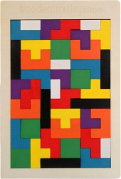 Drvena logička slagalica donosi pametnu zabavu za mlađu i stariju djecu. Zadatak je složiti 40 čvrstih drvenih dijelova različitih oblika i boja tako da tvore kompaktni pravokutnik. Igra prirodno potiče analizu oblika, prostornu maštu i rješavanje problema.