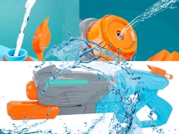 Uživajte u osvježenju u svakoj igri s ovim velikim pištoljem na vodu. Pumpni mehanizam stvara snažan mlaz vode koji doseže veliku udaljenost, pa ćete postati zvijezda svake vodene bitke.
