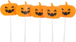 Pretvorite svaki desert u zvijezdu Halloweena. Narančaste bundeve s osmijehom jack‑o’‑lantern na bijelim štapićima daju vašim cupcakesima, tortama i sitnim zalogajima trenutačnu atmosferu. Dovoljno je samo zabosti ukrase – bez lijepljenja i bez nereda.