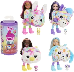Lutke Barbie Cutie Reveal Chelsea Šareni snovi donose djeci radost otkrivanja i maštovitog stiliziranja. Slatki plišani kostim (zec, zebra, pingvin ili dalmatiner) nakon otkrivanja pretvara se u oversize kaputić za lutku, a glava kostima u ležaj za mini ljubimca. Svako raspakiravanje skriva do 6 iznenađenja i potiče maštu te finu motoriku.