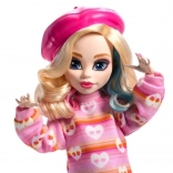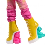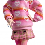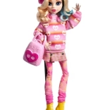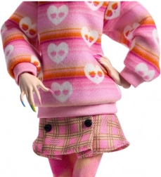 Kolekcija Monster High x Wednesday veliča mračni humor i atmosferu koju poznajemo iz serije. Enid Sinclair ne boji se kombinirati uzorke u svom outfitu: prugasti pulover, karirana suknja i šarene čarape stapaju se u ikoničan izgled.