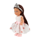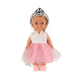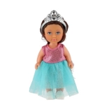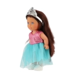 Lutka je opremljena krunicom i dugom kosom, što joj daje poseban šarm.