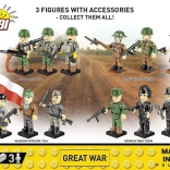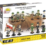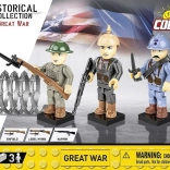 Konstrukcijski set Veliki rat 3 figurice 35 dijelova idealan je za ljubitelje povijesti i modelarstva. Set sadrži figurice vojnika iz Francuske, Ujedinjenog Kraljevstva i Njemačke, od kojih je svaki opremljen jedinstvenim naoružanjem i odjećom tipičnom za razdoblje Velikog rata. Vojnik u plavoj uniformi predstavlja Francuza s puškom Lebel Mle 1886 i bajunetom, britanski vojnik ima dvobojnu pušku Lee-Enfield s bajunetom, a njemački vojnik opremljen je puškom Mauser i tipičnom kacigom pickelhaube.