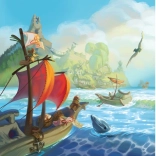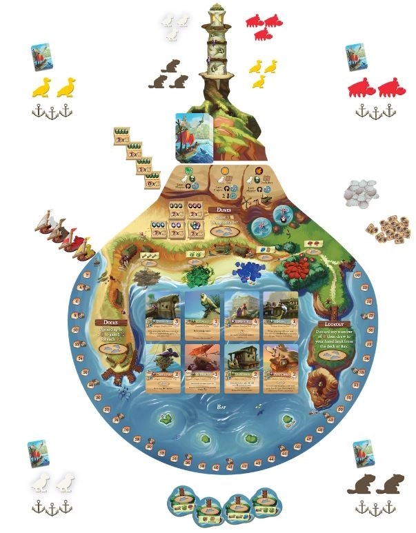 Velika igraća ploča sa svjetionikom, otocima i akcijskim poljima spaja izgradnju grada s plovidbom morem. Pribavite blago, istražujte i bodujte pametnije od protivnika.