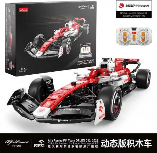 Sastavite kultni bolid ALFA ROMEO F1 C42 u mjerilu 1:8 i upravljajte njime na daljinu. Set za slaganje brenda Rastar sadrži 2261 dio, nudi detaljno obrađenu unutrašnjost, gumene gume i kvalitetne dijelove od ABS plastike. U paketu je baterija 7,4 V za vozilo, daljinski upravljač zahtijeva 4× AAA (nisu uključene). Certifikati CE/EN71/RoHS.